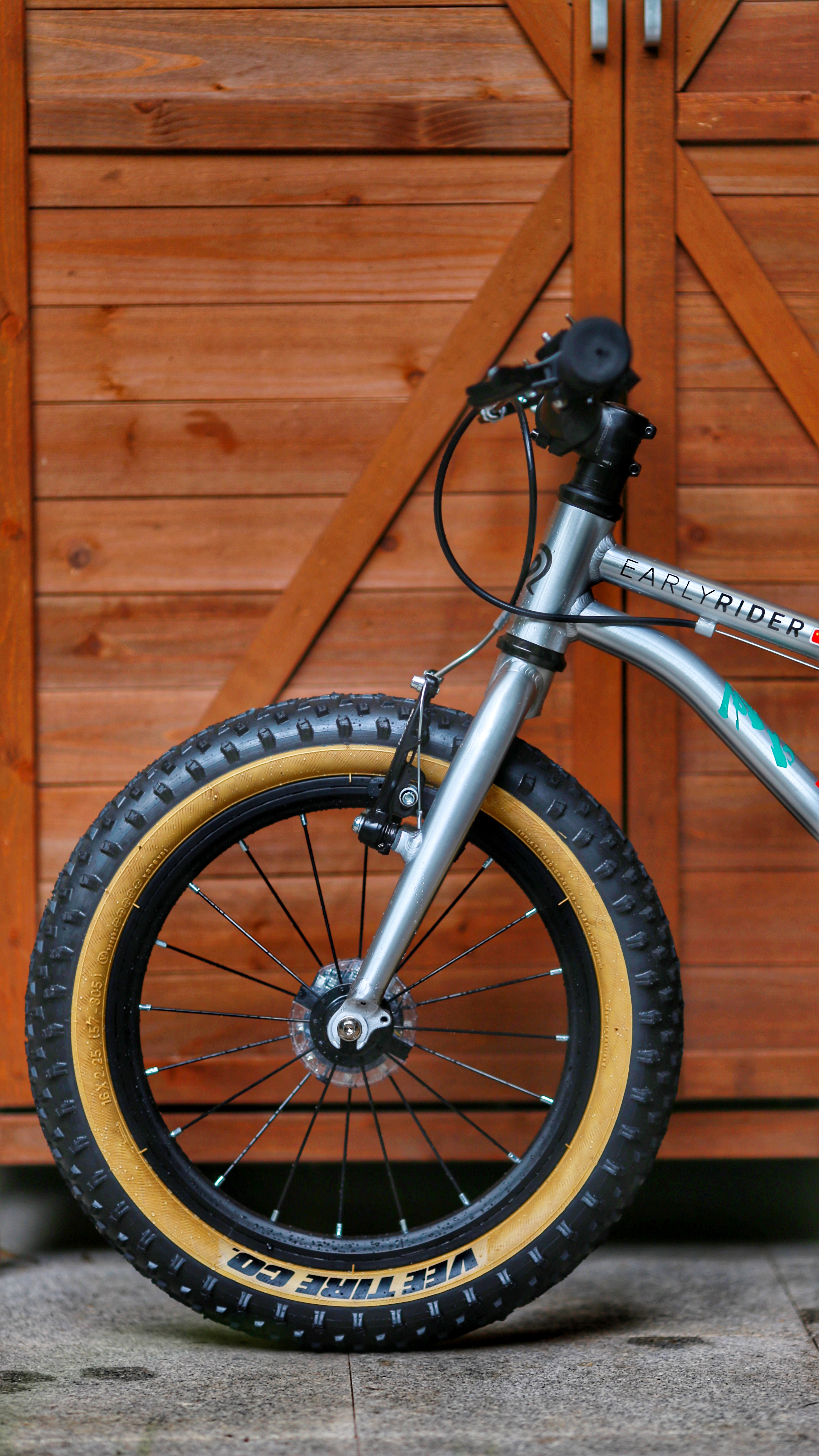 完美契合early rider的造车理念,VEETIRECO拿出了自己的明星轮胎产品配套Early Rider , CROWN GEM 系列山地花纹,12寸到24寸全系,肤色边加持让整体显得更加复古。